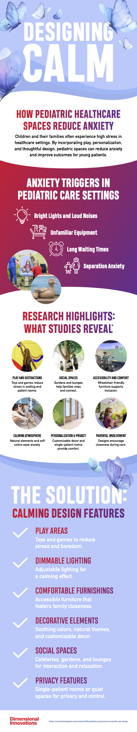 A calm, thoughtfully designed environment reduces the risk of behavioral outbursts, improves communication between caregivers and providers, and supports better outcomes. Pediatric healthcare spaces that prioritize emotional safety create a more positive experience for children, families, and medical staff alike. Design decisions that reduce anxiety are foundational to safe, high-quality pediatric care. For more information, look over the infographic below.