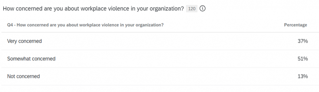 Workplace violence continues to be a major issue in healthcare. Asked about their level of concern regarding workplace violence, 37% said they were very concerned, 51% were somewhat concerned, and 13% were not concerned.